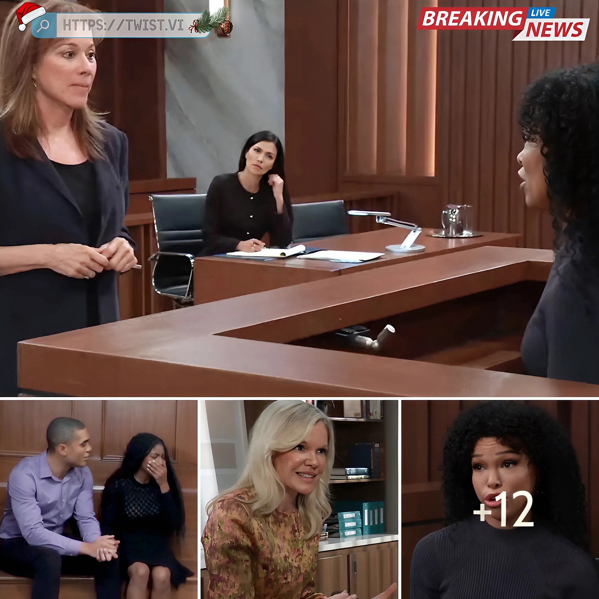 Back in court, Alexis wants to call her next witness, but the judge decides to adjourn until after the New Year. Drew snaps at Alexis, “That was a disaster! “As Justine heads out, she lets Drew know that someone will be in touch about the extortion accusations. “Happy Holidays!”
